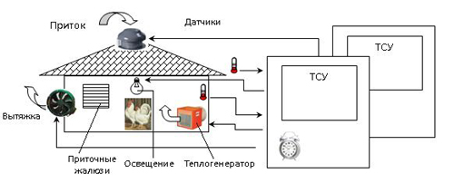 Устройства поддержания микроклимата в птичниках и других помещениях сельскохозяйственного назначения ТСУ-3КЛ-МП с микропроцессорной системой управления